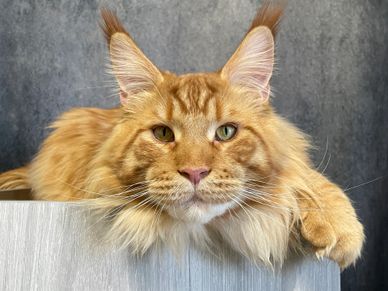 Naples is a true delight with his stunningly bright red coat and impressive ear tufts. At 23 lbs, he’s a gentle giant—calm, loving, and always producing amazing kittens. His favorite activities are cuddling in bed and fetching toys, making him the perfect combination of playful and affectionate.
